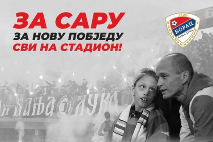 Fudbalski klub Borac pokrenuo je humanitarnu akciju za djevojčicu Saru Vujinović, kćerku navijača Darka Vujinovića, koji je preminuo prije godinu dana.