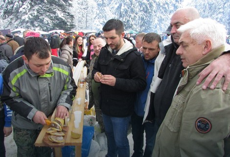 – Zbog velike gužve kombi smo morali zaustavili podalje od Mrakovice. Šestorica su se smenjivala da bi kobasicu od 4 metra plus jednu manju od metar i po doneli na planinski plato i postavili na stolove. Narod se brzo okupio strpljivo čekajući da je načnemo. Na smenu smo je rezali da bi za sat nestala, pojeden u slast. Narod je napunio stomake, a mi smo dobili velike pohvale, što nam je i bio cilj, neka se zna i priča o tome – rekao je Miloš Đakić koji već sada, posle pakovanja noževa i drugog mesarskog alata smišlja novi poduhvat o kojem će se imati šta pričati.