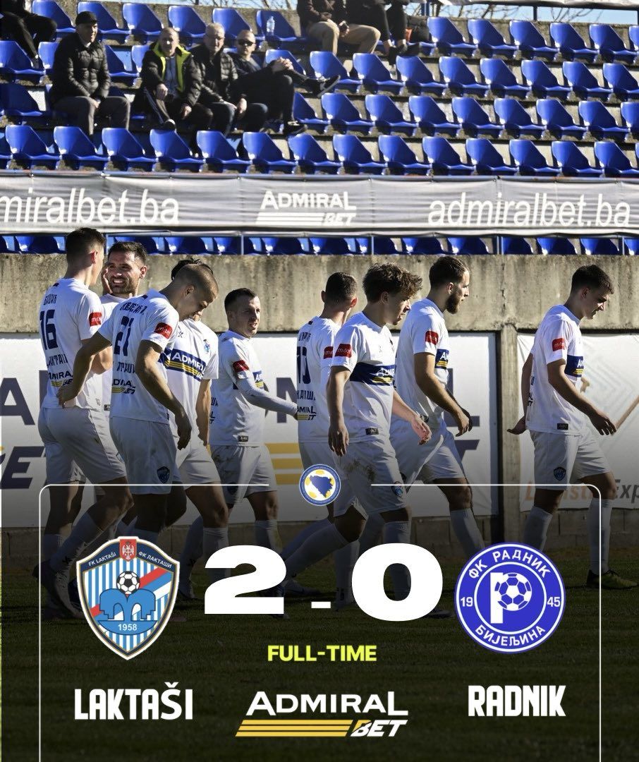 Fudbalski klub Laktaši je stekao veliku prednost za revanš meč četvrtfinala Kupa BiH, nakon što su na svom terenu savladali premijerligaša Radnik 2:0.