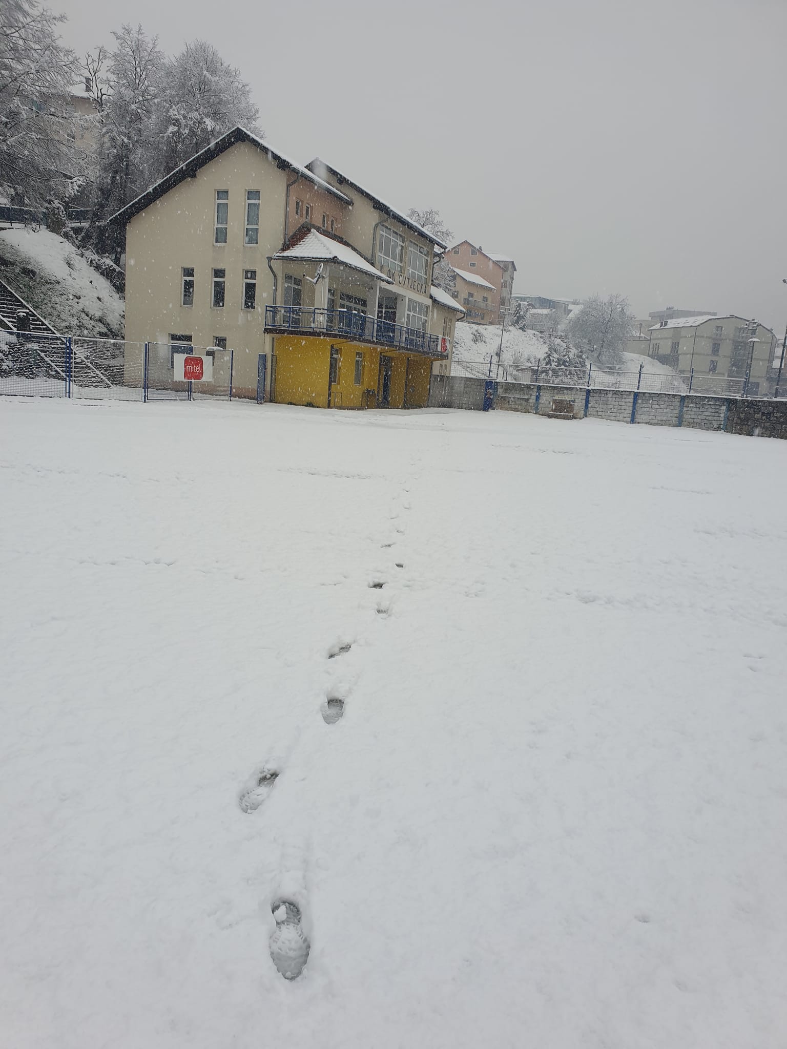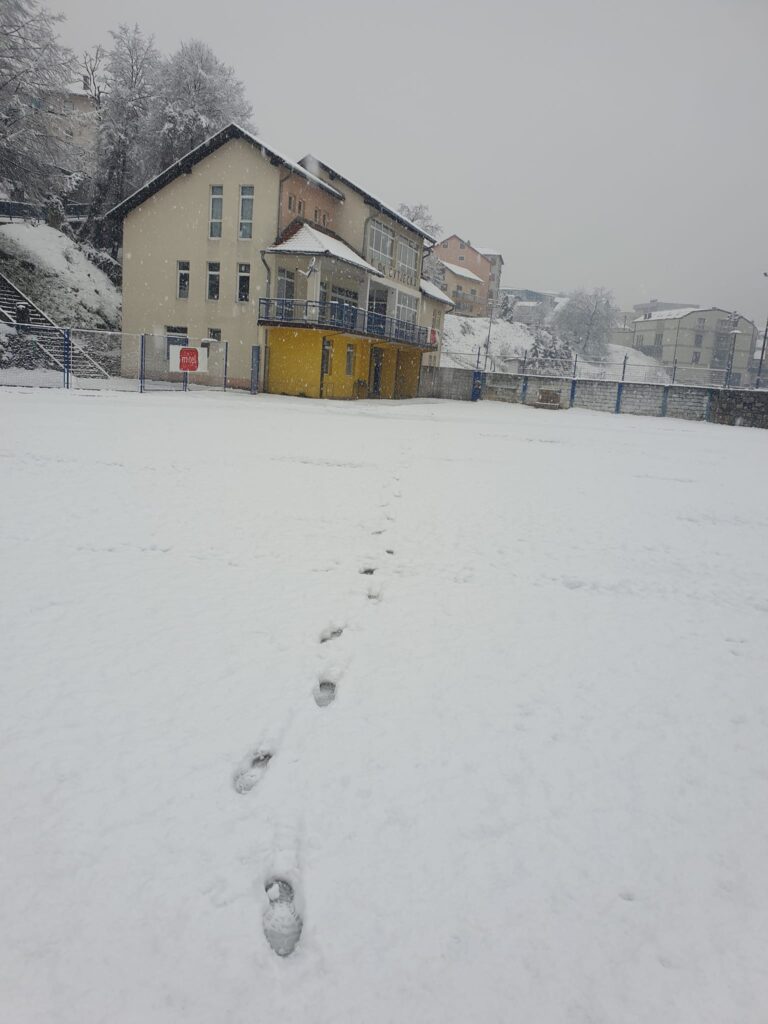 Tako je stadion “pokraj Ćehotine” u nedjeljno jutro se zabijelio pod snježnim prekrivačem. Ništa neobično za Foču, i ovaj kraj Republike Srpske, ali za ovo doba godine ipak jeste….